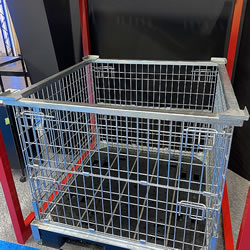 | 今ある平パレットを活用し、荷物の落下などを防止 平パレットを活用し、ボックスパレットのように積載物の落下などを防ぐ製品です。 使ってない時は折りたたみができるので、スペースの有効活用が期待できます。 ![]() ■特長 ●ゲートが両開きにのためピッキング作業を効率よく行うことができます。 ![]() ●枠型の専用のアタッチメント(オプション)をセットテーナーに載せることで段積みが可能に。 ![]() ●折りたたむことができるので使わない時も場所を取らず収納が可能です。 ![]() ■使用例 ![]() ■仕様