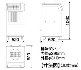 業務用移動式エアコン単相200V(冷房)![]() ■特長 ●様々な空間に対応できる、冷房専用移動式エアコン!。 ●温度を管理することにより、無駄な冷房をおさえ、効率よく作業場の環境改善が可能です。 ●工場・倉庫・作業場の暑さ対策・環境改善に。 ●パッケージエアコン(オフィス・店舗・ビル)の修理点検時の代替冷房として。 ●イベント会場、仮設テント等の仮設冷房に。新築、リフォーム中の建造物内仮設冷房に。 ※電源コードはついておりません。配線の長さに応じて、適切な太さのコードをご購入の上ご使用ください。 ※電源の据付工事が必要です。電気工事の有資格者または電気工事店へお問い合わせください。 ![]() ■寸法図 ![]() ■仕様