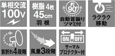 | ●上下に伸縮可能な工場扇 ●工場、倉庫、集会場などの空気の循環に ●サーマルプロテクター(過熱保護装置)内蔵で、モーターが過熱した際、電源を遮断します。 ●夏場の高温対策に、冷暖房効率アップ ![]() ![]() ![]() ![]() ■寸法図 ![]() ■仕様