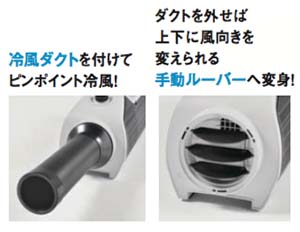 ポータブルミニクーラー![]() ■特長 ●2WAY仕様の横型ミニクーラー!ダクト標準装備で操作も簡単。持ち運べる冷房で涼しく快適に。机の下や椅子の下にも設置できる低床タイプ。 ●冷風・送風の切替可能。 ●固定しやすいハードタイプの冷風ダクトを採用。お好みの角度に固定できるので多用途に使用できます。 ●ドレンレス構造で冷風時面倒な水捨ての必要がありません。 ※使用状況によっては、排水が必要な場合があります。 ●冷風ダクトは、自立可能で上方向への送風も対応します。 ●伸縮式排熱ダクトで150cmまで長さ調整できます。 ![]() ■仕様