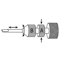 | ビットをしっかり固定する、コレットチャック方式採用。 極小ネジの締め付けに威力を発揮。 ![]() ■特長 ●設定されたトルク値に達すると空転しますので、どなたでも正確な値でネジの締め付けが可能です。 ●精密機器などのネジを、正確なトルク値で締め付けることができる、超小型空転式トルクドライバー。 ●ビットをしっかり固定するコレットチャック方式。ビットの脱落、紛失を防ぎます。 ●スリムで軽量な造りで、細かな作業でも疲れません。 ●時計、カメラ、医療機器、電子機器、携帯電話、モバイル機器など小型精密機械の組立に最適です。 ●締付け方向は右回転のみ使用できます。 ●セット値に達すると空転します ●1N・mの1/1000と超微小トルクで締め付けが可能 ●時計、カメラ、医療機器など小型精密機器に最適です ●専用ビットのMBタイプ コレットチャック方式でしっかり固定します ●負荷方向:右 ●精度 :±3% ■コレットチャック方式ビット着脱方法 ビット取付部のAの部分を指 で押さえ、Bの部分を回すことで、ビットの着脱・固定が簡単にできます。 ![]() ※ご注文の仕方 必要とされるトルク値に合った型式をご指定ください。 ※本体には、+ビットが附属品として付いております。 ![]() ■仕様 (精度:±3%)