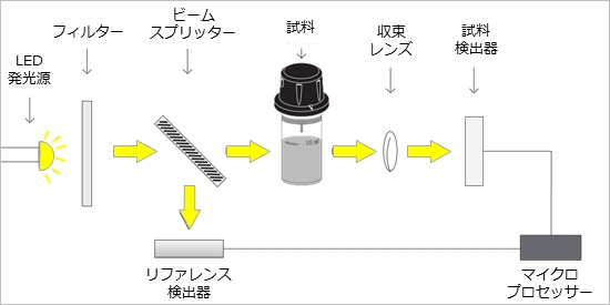 mg/L)の銅を測定します。 測定に使用する専用の試薬は、測定頻度に合わせてお選びいただけます。また本器では、バリデーター(標準液セット)での本体の数値検証・校正も行えます。これにより高い精度と信頼性を保て安心です。 ![]() ■特長 ●ビームスプリッターを採用した先進の光学システムにより再現性と安定性が向上。 光源が従来のタングステンランプからLEDに変更。優れた性能を発揮します。 ・ビームスプリッター&リファレンス検出器 ビームスプリッターにより光は試料側のほかリファレンス検出器にも利用され光の密度をチェックします。リファレンス検出器は電力や光学部品の熱による変動を補正し安定した光源を供給します。 ・LED光源 タングステンランプ(従来シリーズ)と比べ優れた性能を持ちます。LEDは発光効率が高く電力の弱い時でもより強い光を供給。また熱の発生も少なく光学部品の電気的な安定にもつながります。 ・フィルター(帯域通過フィルター) 帯域幅:8nm、波長精度:± 1.0nmを確保。より明るく強い信号を受信することで波長の読み取りエラーが少なくなり精度の高い測定につながります。 ・集束レンズ ガラスセルを通るすべての光を集めガラスセルのキズなどによる誤差をなくします。 ![]() ●メーカー独自の検証・校正機能 メーカー独自のバリデーター(標準液セット)を使うことで基準値内にあるかの検証と、許容範囲外の場合には校正が行えます。(校正とは本体の数値のズレを補正する機能)お客様ご自身でいつでも行えるため、常に高い精度と信頼性を保て安心です! 液体の入った2種類のガラスセルを使用し測定値の検証と校正が可能。 高い精度や信頼性を求める方にはぴったりです!(機種や測定項目によって液の色は異なります) ![]() ●防水&データ保存 本体ケースは防水機能がIP67になり、ガラスセルの挿入部もプラスチックホルダーを採用。 ![]() ●50データの自動ロギング機能 測定値を自動で50データまで保存するので安心。詳細ボタンで測定日時もしっかりわかります!(年/月/日 時:分:秒) バッテリー残量(%)を常に画面表示。バックライト機能が付きより見やすくなりました。 ![]() ●測定手順のナビゲーション機能。 ●使いやすいコンパクトサイズ 横幅は142mmと従来シリーズに比べさらにコンパクト設計。 それはスマホと並べるとおわかりいただけるはずです!パワーアップした性能が凝縮した1台です。 ●付属品がしっかり収まるキャリングケース A4用紙より少し大きいほどのサイズで、持ち運びや保管もラクです。(機種によって配置や内容物の違いは多少あります) ![]() ■仕様