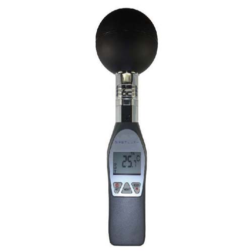 | ●WBGT値 ●気温、相対湿度、黒球温度 ●オート(20分)/マニュアルパワーオフ機能 ●WBGT値アラーム設定機能 ●ローバッテリー表示機能 ![]() ■特長 ●WBGT値(熱中症指数)の把握で熱中症対策を! ●φ75mmの黒球を使用し、安定した測定が可能 ●ボタン3つで扱いやすく、キー操作が簡単です ●小型で軽量タイプのハンディー型測定器 ![]() ![]() ■使用方法 ①使用時には気温・湿度センサカバーを下げる ②屋外で日射がある場合は「OUT」、屋内か日射のない場合は「IN」に設定 ③三脚などで地表から1.2~1.5の高さで周囲に壁面がない状態で使用する ④黒球は太陽に向ける ⑤屋外での使用には雨、砂埃に注意 ※上記はあくまで推奨される測定方法です。測定器を持ち胸の高さで測定することも可能です。 ■労働作業時の目安