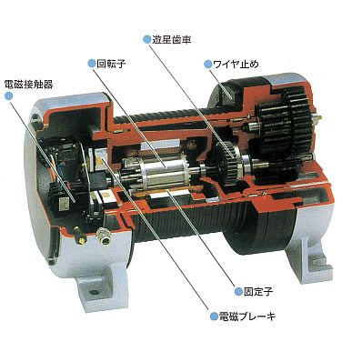 大径の溝付ドラム、独自のワイヤ止メ等ロープにやさしい設計で、ロープ巻取方向も360度自由です。