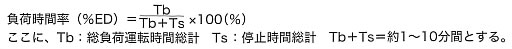 ●負荷時間効率とは、電動機の休み時間を含めた作業時間に対する電動機の総負荷運転時間の割合。百分率で表す。負荷時間率は、次の式によって計算する。