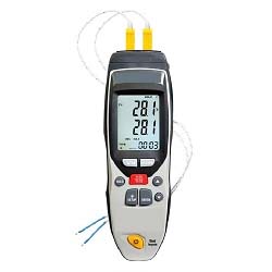 | 迅速な応答機能と精度を提供するデュアル温度計。 温度センサーは外付け熱電対温度プローブ(K/J)を使用。 ![]() ■■特徴 ●外部温度プローブ ●℃、ºF 或いはK選択可能 ●0.1℃/ 0.1ºF/ 0.1Kの解像度 ●タイプK /タイプJ入力 ●最大/最小/平均およびデータ保持 ●温度差 ●高/低アラーム(音/オーディオ) ●スキャン機能(T1、T2、T1-T2...... ) ●バックライト付きのLCDディスプレイ ●交換可能な熱電対探触子 ●自動シャットダウン ●ローバッテリー機能 ●調整可能なサンプリングレート ●USBインターフェース ●メモリ読み取り ■仕様