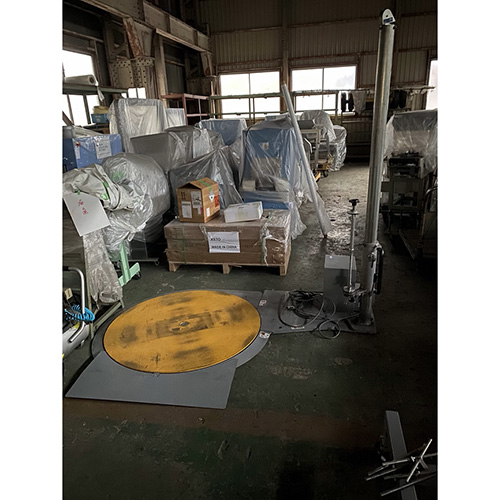 電動ターンテーブル+手動ストレッチポール+スロープと納入時移動台車がセットです。