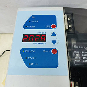 | 手軽な操作で1、2、3、4列印字が可能な電動タイプ ●手軽な操作で印字ができます ◇手軽な操作でボイル処理やひっかきにも強く、美しい印字がシールと同時にできます。* ◇設定を変更することにより1、2、3、4列印字器として使用できます。 ◇電子ヒーターの採用で昇温時間が短く、消費電力が少ない経済的なプリンターです。 *一部印字がきれいにできないフィルム(OP、CPなど)があります ![]() ●選べる操作方法 ◇タッチスイッチ操作=タッチスイッチをONした時に駆動。 ◇光センサー感応=袋挿入時にセンサーが感応し、駆動。 ◇連続運転=0.1~5秒間隔(0.1秒刻みに設定可)から駆動方法が選べます。 ●用途 電動プリンター:1、2、3、4列印字器(設定変更により列数変更) 印字可能包材:KOP、NY/PE、PE, 紙など 最新タイプ:Aタイプ ![]() ■特長 ●活字を使用した印字です ●文字変更は活字を交換することで行います。活字の交換により、製造年月日、製造番号、重量、価格(オプション)、品名(オプション)などの印字内容の変更ができます。 左の印字見本は4列分ある活字ケースの3列に通常の活字を使用し「製造年月日」「消費期限」「NET」をセット。残りの1列にスペース活字(36mm)をセットした場合のサンプルです。 ●活字は印刷用活字をプリンター用に改良を加えたものです。材質は亜鉛合金。オプションでポイント数の異なる文字の作成が可能です。 ![]() ●印字温度調整可能 印字温度が10段階:110~180度の範囲で可能です。 ●印字濃度調整可能 印字の濃度が10段階で調整可能です。 ●使い勝手の良さをご提供 ◇印字回数を表示するカウンターを標準装備しています。 ◇電源をオンにした後、または、印字温度設定変更後、印字可能な温度になるとコントロールパネル上の印字可能お知らせランプが点灯してお知らせします。 ◇リセットができるカウンター機能を標準で装備しています。表示範囲=0000~9999 ![]() ●インクを使用しません 印字はインクを使用しない「加熱した活字でプリントテープを焼き付ける」方式です。 プリントテープ1巻(100M巻き)当たりの標準的な消費量 4列印字....約 5,000印字 3列印字....約 6,600印字 2列印字....約 10,000印字 1列印字....約20,000印字 ![]() ■安全対策 ●メンテナンス時などに開く機械本体横のカバーを開いている時には、 モーターが駆動しない安全機構を採用しています。 ●エラー発生時、ディスプレイ表示 プリントテープのセットに不具合がある場合やプリントテープ切れが発生した場合をはじめ、 エラー発生時に液晶ディスプレイにメッセージ番号をお知らせします。 ■仕様