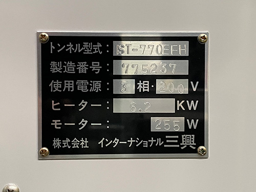 中古シュリンクトンネル 品番 IST-770EFH 問い合わせ番号 Z-0976-7 |